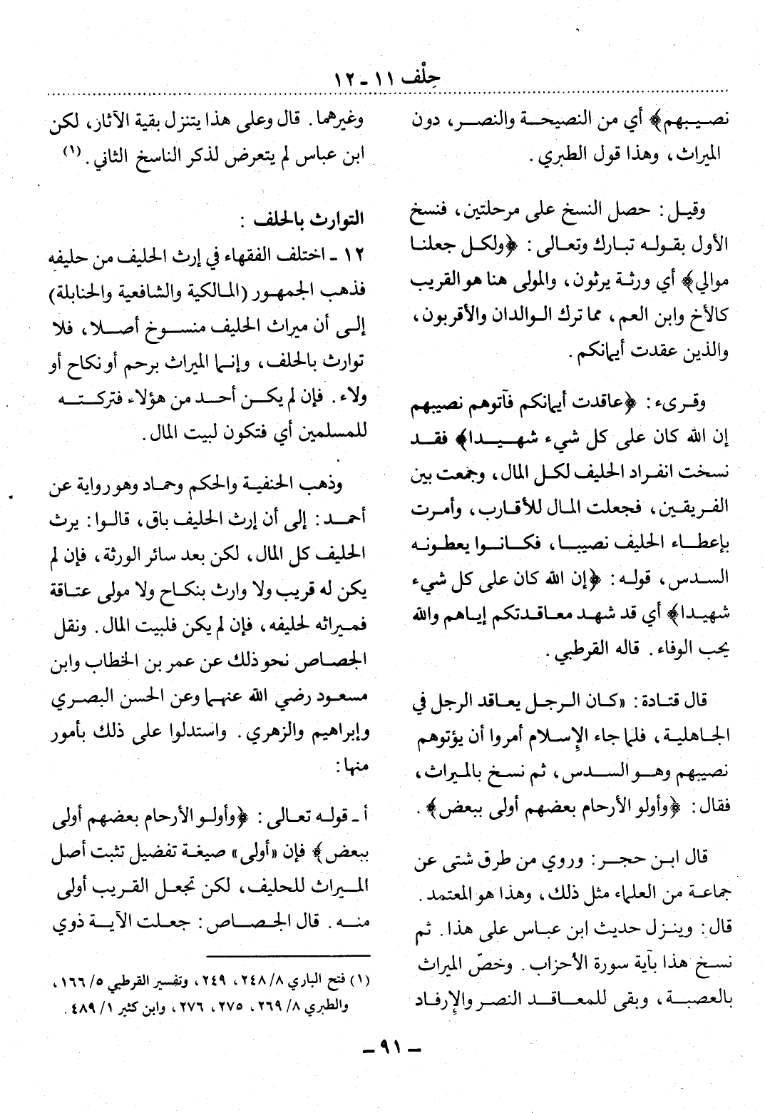 قَال: وَيُنَزَّل حَدِيثُ ابْنِ عَبَّاسٍ عَلَى هَذَا. ثُمَّ نُسِخَ هَذَا بِآيَةِ سُورَةِ الأَْحْزَابِ. وَخُصَّ الْمِيرَاثُ بِالْعَصَبَةِ، وَبَقِيَ لِلْمُعَاقِدِ النَّصْرُ وَالإِْرْفَادُ