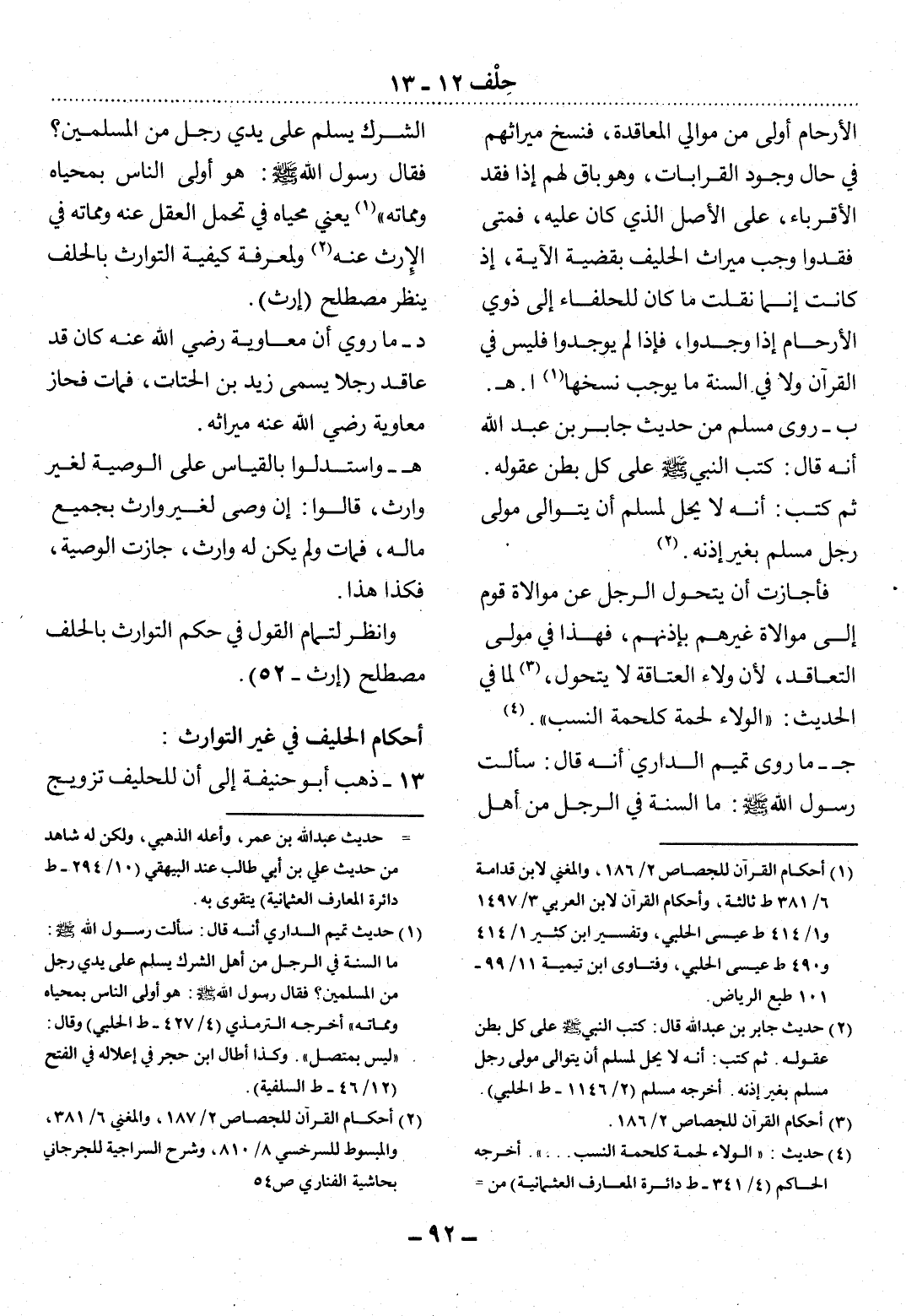 (2) أحكام القرآن للجصاص 2 / 187، والمغني 6 / 381، والمبسوط للسرخسي 8 / 810، وشرح السراجية للجرجاني بحاشية الفناري ص54.