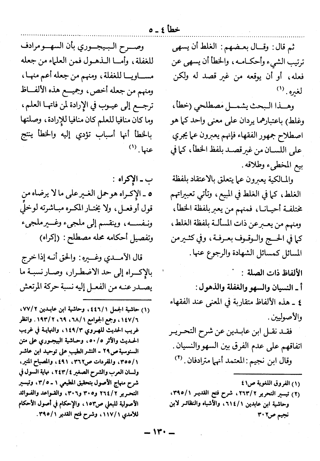 وَهَذَا الْبَحْثُ يَشْمَل مُصْطَلَحَيْ (خَطَأٌ، وَغَلَطٌ) بِاعْتِبَارِهِمَا يَرِدَانِ عَلَى مَعْنًى وَاحِدٍ كَمَا هُوَ اصْطِلاَحُ جُمْهُورِ الْفُقَهَاءِ فَإِنَّهُمْ يُعَبِّرُونَ عَمَّا يَجْرِي عَلَى اللِّسَانِ مِنْ غَيْرِ قَصْدٍ بِلَفْظِ الْخَطَأِ، كَمَا فِي بَيْعِ الْمُخْطِئِ وَطَلاَقِهِ.