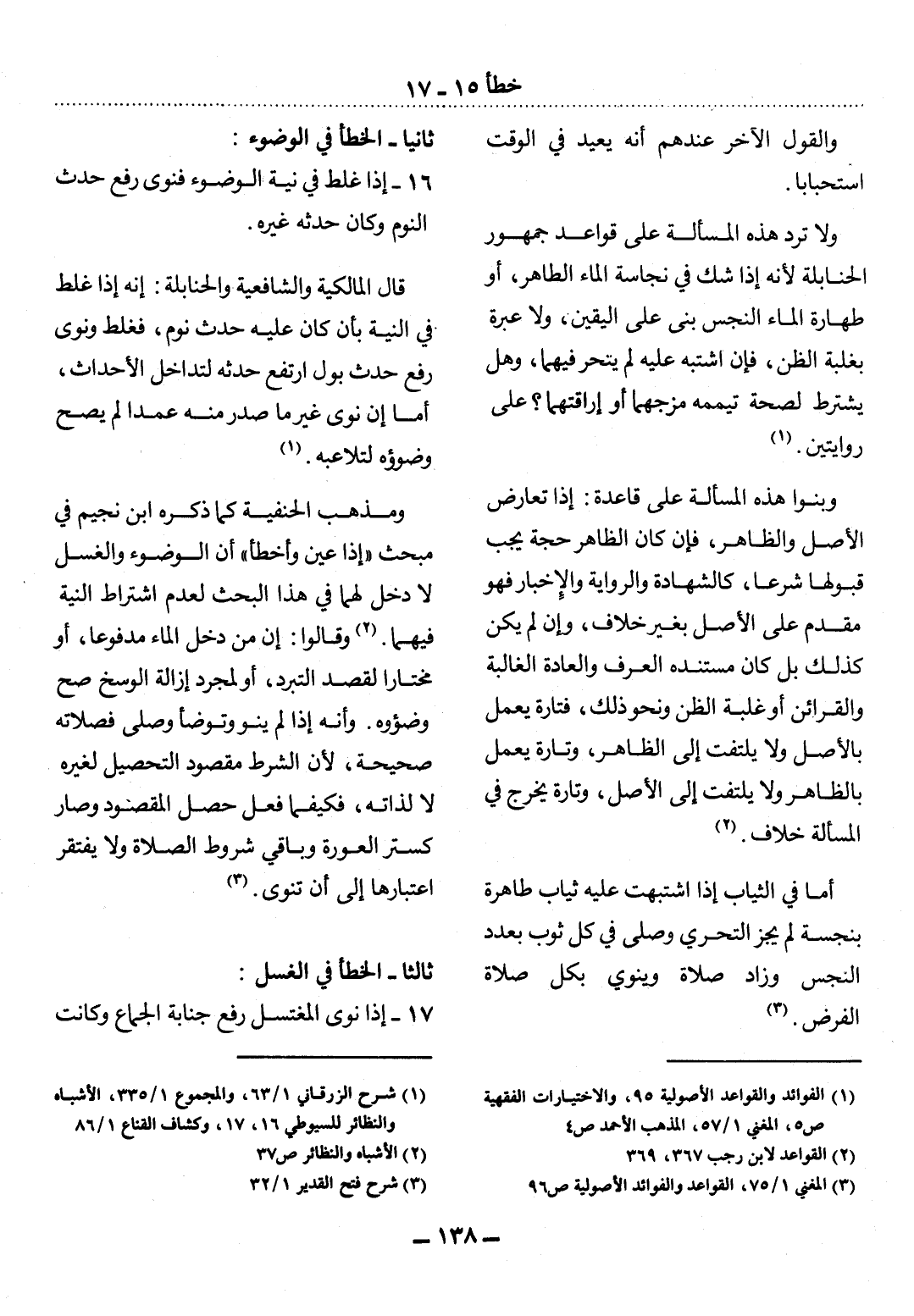(1) شرح الزرقاني 1 / 63، والمجموع 1 / 335، الأشباه والنظائر للسيوطي 16، 17، وكشاف القناع 1 / 86