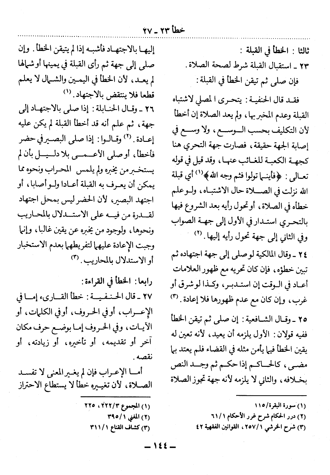 ثَالِثًا: الْخَطَأُ فِي الْقِبْلَةِ: