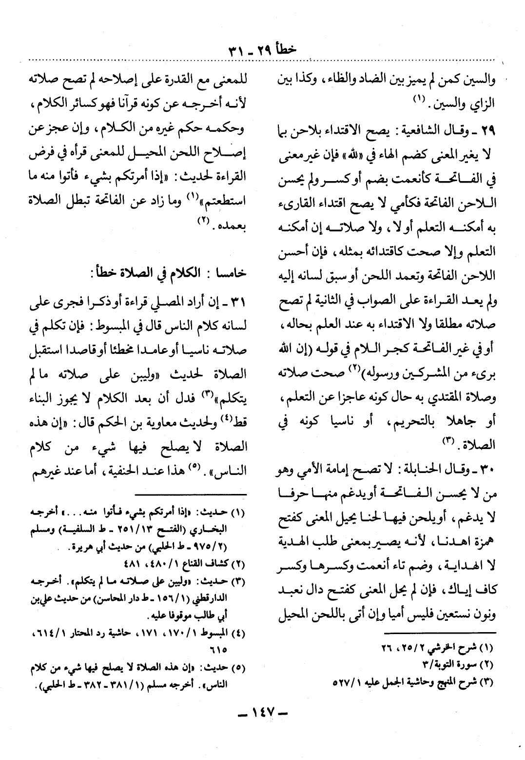 خَامِسًا: الْكَلاَمُ فِي الصَّلاَةِ خَطَأٌ: