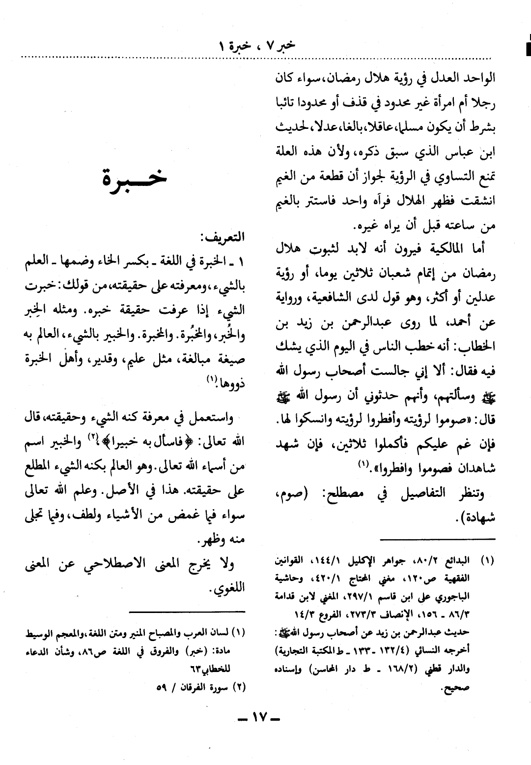 (1) لسان العرب والمصباح المنير ومتن اللغة، والمعجم الوسيط مادة: (خبر) والفروق في اللغة ص 86، وشأن الدعاء للخطابي 63.