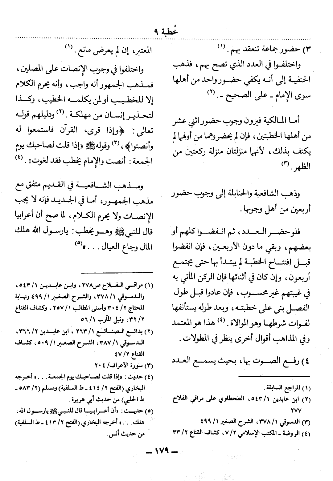 (1) مراقي الفلاح ص 278، وابن عابدين 1 / 543، والدسوقي 1 / 378، والشرح الصغير 1 / 499 ونهاية المحتاج 2 / 304 وأسنى المطالب 1 / 257، وكشاف القناع 2 / 32، ونيل المآرب 1 / 56