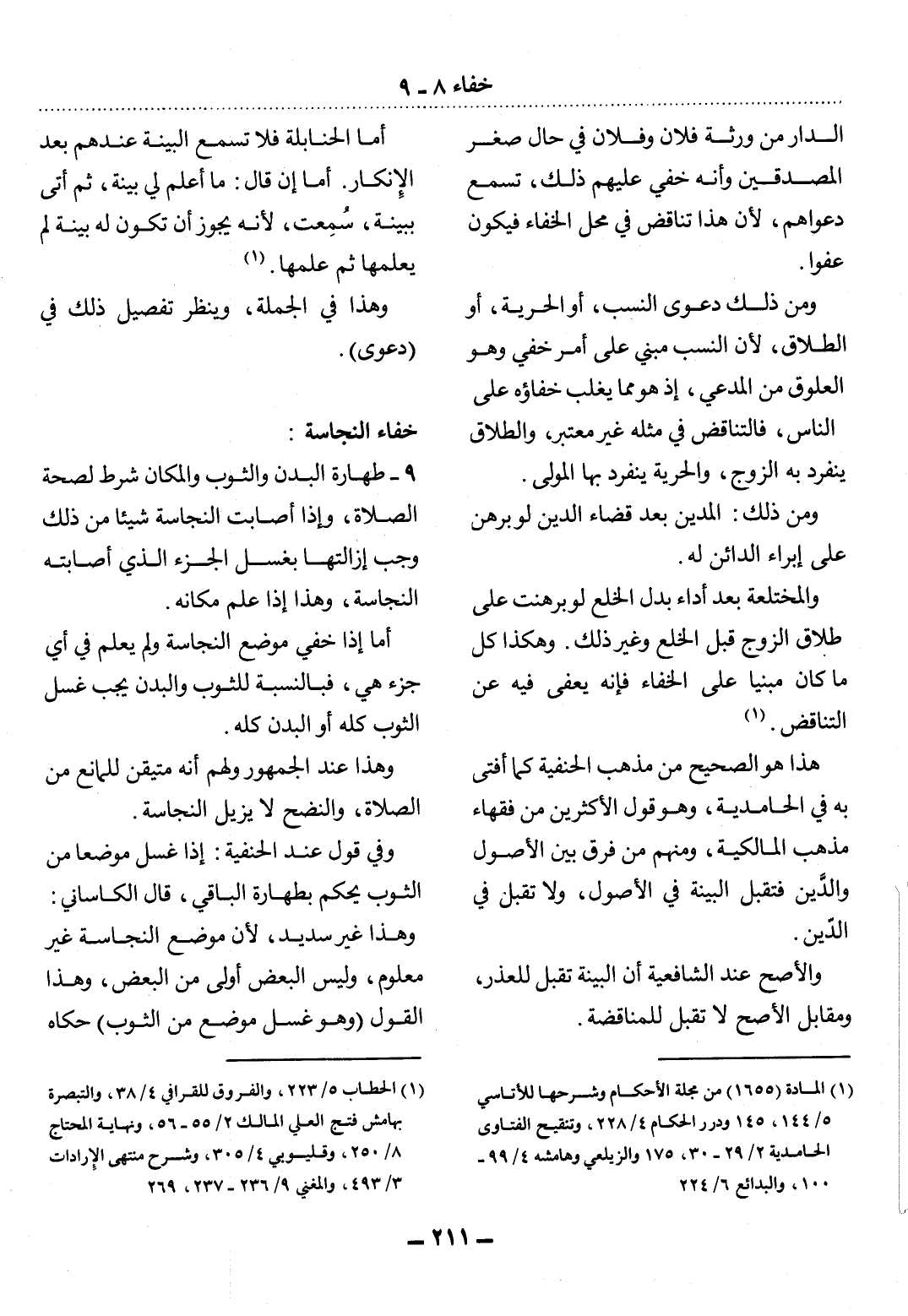 (1) المادة (1655) من مجلة الأحكام وشرحها للأتاسي 5 / 144، 145، ودرر الحكام 4 / 228، وتنقيح الفتاوى الحامدية 2 / 29 - 30، 175 والزيلعي وهامشه 4 / 99 - 100، والبدائع 6 / 224.