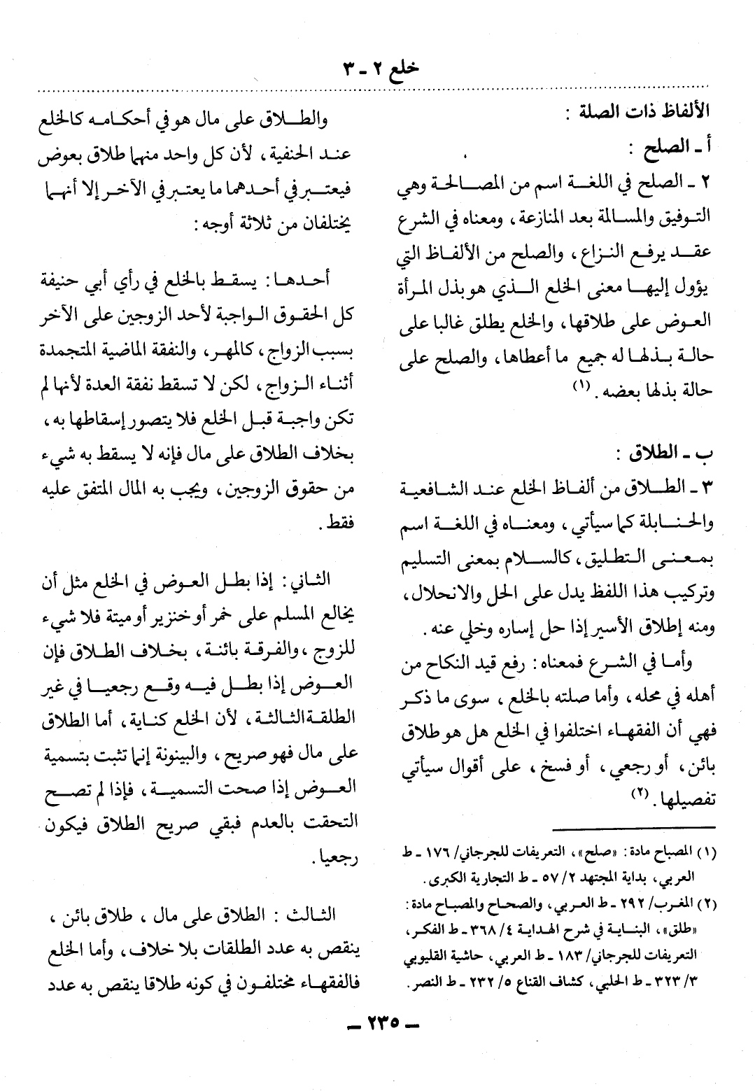 (1) المصباح مادة: " صلح "، التعريفات للجرجاني / 176 - ط العربي، بداية المجتهد 2 / 57 - ط التجارية الكبرى.