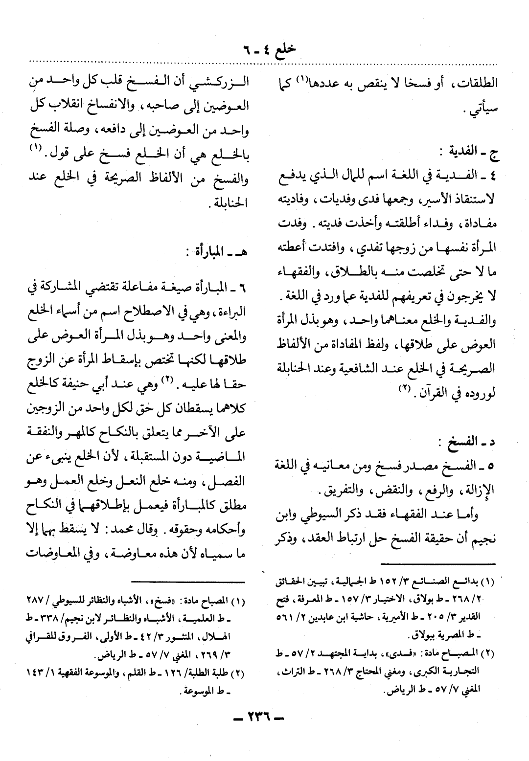 (1) المصباح مادة: " فسخ "، الأشباه والنظائر للسيوطي / 287 - ط العلمية، الأشباه والنظائر لابن نجيم / 338 - ط الهلال، المنثور 3 / 42 - ط الأولى، الفروق للقرافي 3 / 269 - المغني 7 / 57 - ط الرياض.