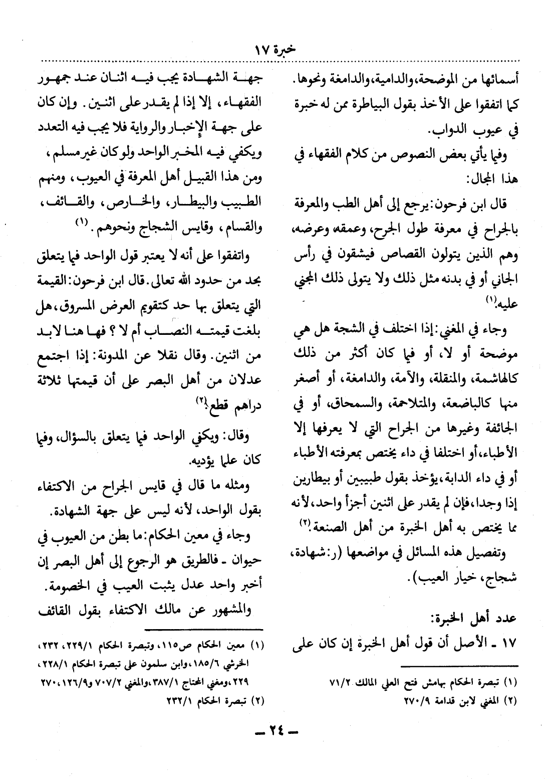 (1) معين الحكام ص 115، وتبصرة الحكام 1 / 229، 232، والخرشي 6 / 185، وابن سلمون على تبصرة الحكام 1 / 228، 229، ومغني المحتاج 1 / 387، والمغني 2 / 707 و 9 / 126، 270.