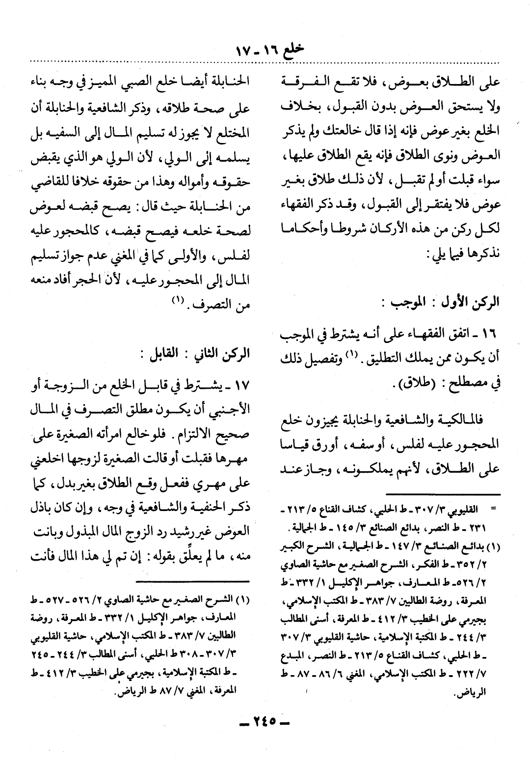 (1) الشرح الصغير مع حاشية الصاوي 2 / 526 - 527 - ط المعارف، جواهر الإكليل 1 / 332 - ط المعرفة، روضة الطالبين 7 / 383 - ط المكتب الإسلامي، حاشية القليوبي 3 / 307 - 308 ط الحلبي، أسنى المطالب 3 / 244 - 245 - ط المكتبة الإسلامية، بجيرمي على الخطيب 3 / 412 - ط المعرفة، المغني 7 / 87 ط الرياض.