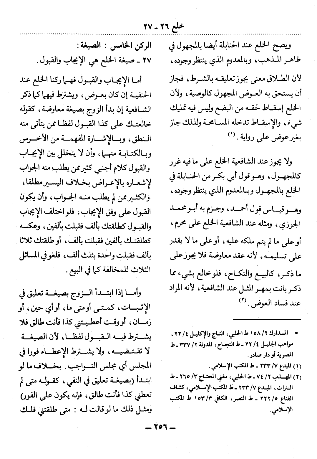 27 - صِيغَةُ الْخُلْعِ هِيَ الإِْيجَابُ وَالْقَبُول.