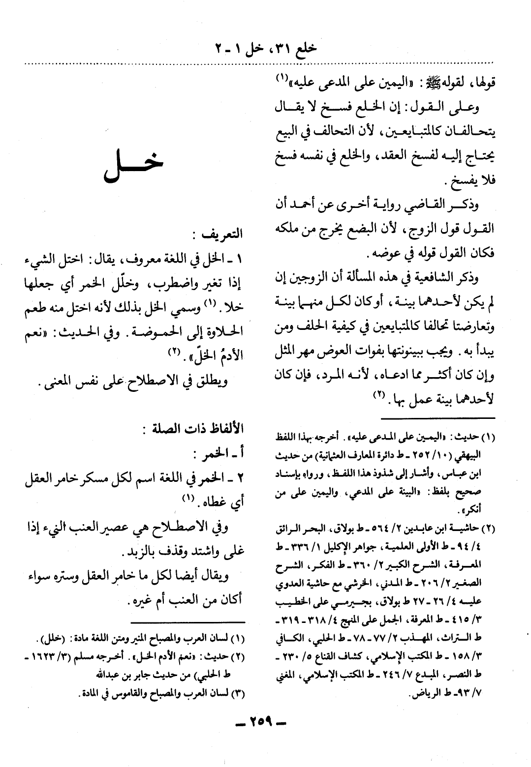 (1) لسان العرب والمصباح المنير ومتن اللغة مادة: (خلل) .