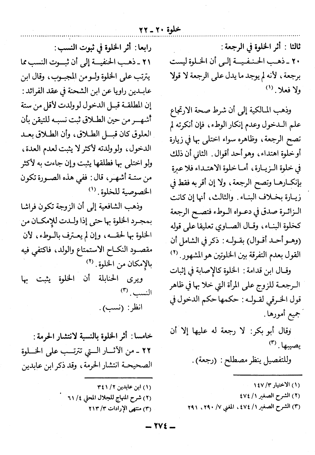 20 - ذَهَبَ الْحَنَفِيَّةُ إِلَى أَنَّ الْخَلْوَةَ لَيْسَتْ بِرَجْعَةٍ؛ لأَِنَّهُ لَمْ يُوجَدْ مَا يَدُل عَلَى الرَّجْعَةِ لاَ قَوْلاً وَلاَ فِعْلاً (1) .