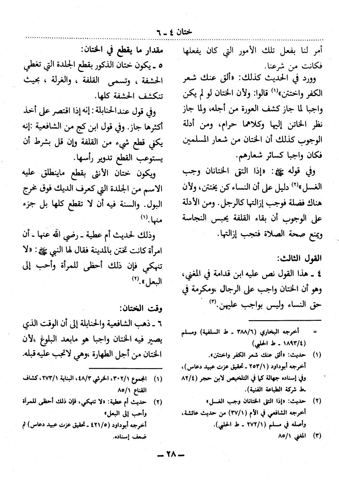 5 - يَكُونُ خِتَانُ الذُّكُورِ بِقَطْعِ الْجِلْدَةِ الَّتِي تُغَطِّي الْحَشَفَةَ، وَتُسَمَّى الْقُلْفَةَ، وَالْغُرْلَةَ، بِحَيْثُ تَنْكَشِفُ الْحَشَفَةُ كُلُّهَا.