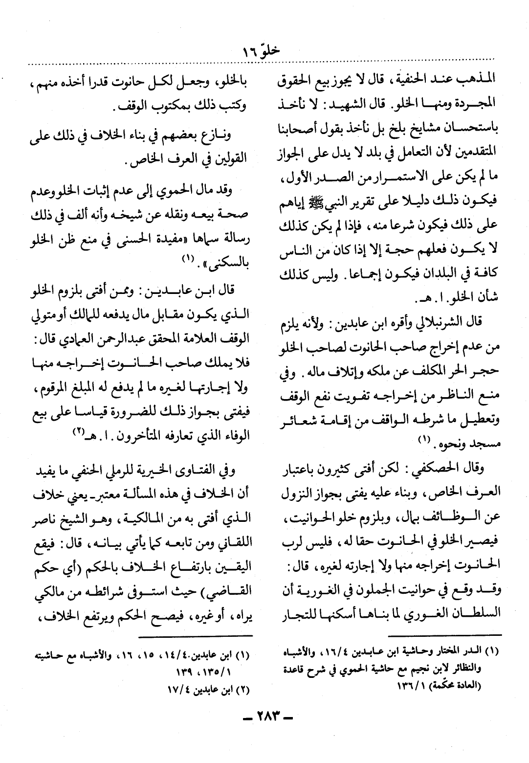 (1) ابن عابدين 4 / 14، 15، 16، والأشباه مع حاشيته 1 / 135، 139.