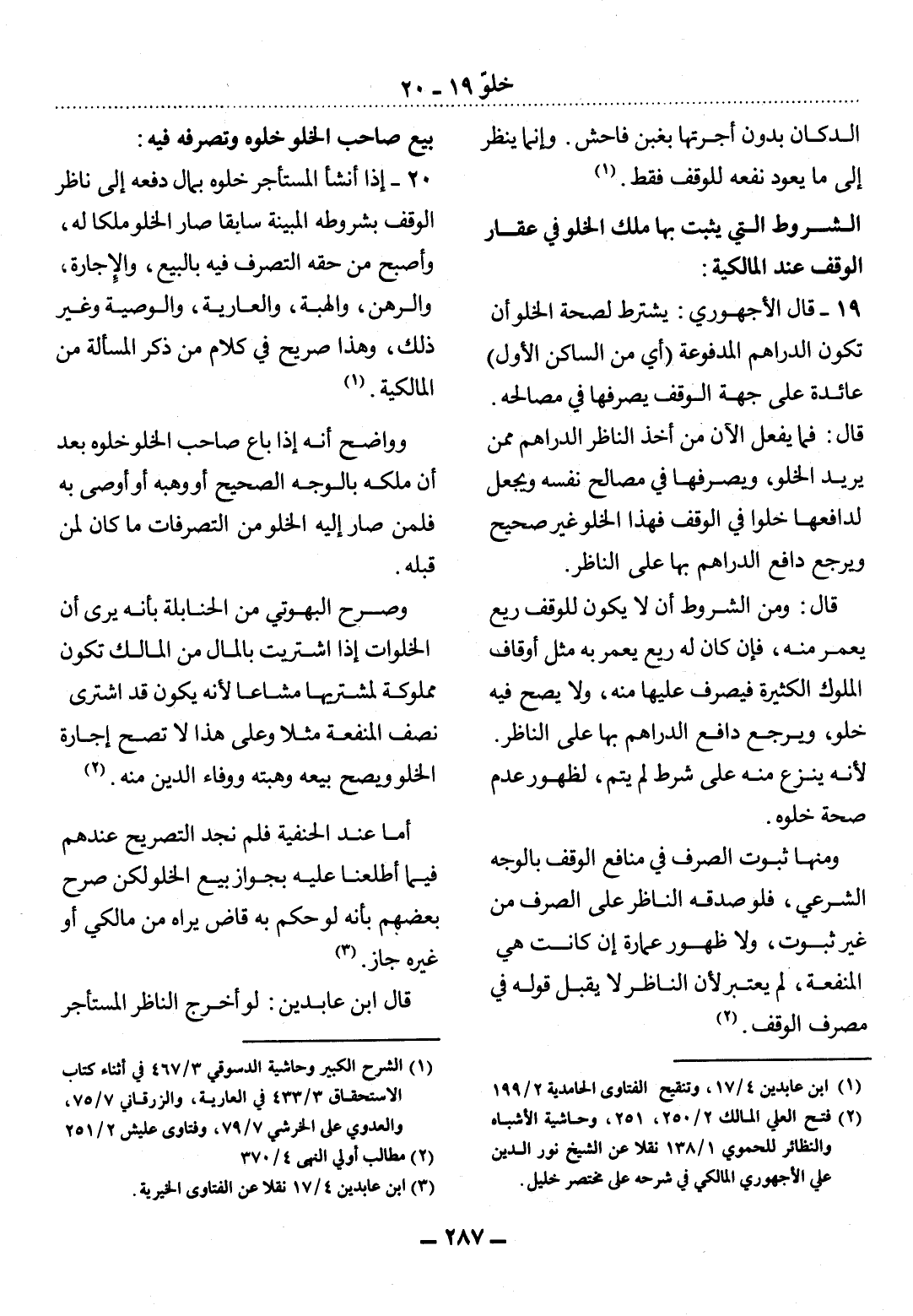19 - قَال الأُْجْهُورِيُّ: يُشْتَرَطُ لِصِحَّةِ الْخُلُوِّ أَنْ تَكُونَ الدَّرَاهِمُ الْمَدْفُوعَةُ (أَيْ مِنَ السَّاكِنِ الأَْوَّل) عَائِدَةً عَلَى جِهَةِ الْوَقْفِ يَصْرِفُهَا فِي مَصَالِحِهِ.