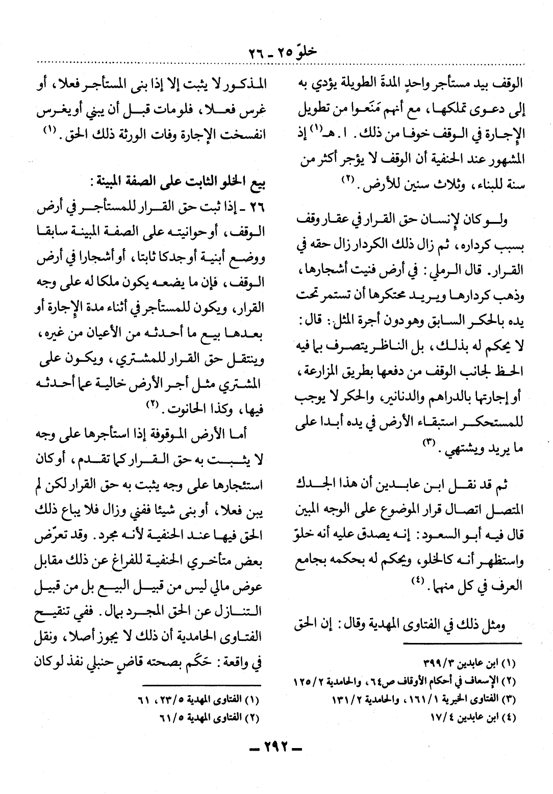 (2) الإسعاف في أحكام الأوقاف ص64، والحامدية 2 / 125.