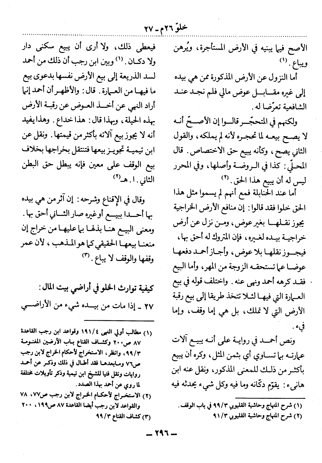 (2) الاستخراج لأحكام الخراج لابن رجب ص77، 78، والقواعد لابن رجب أيضًا القاعدة 87 ص199، 200.