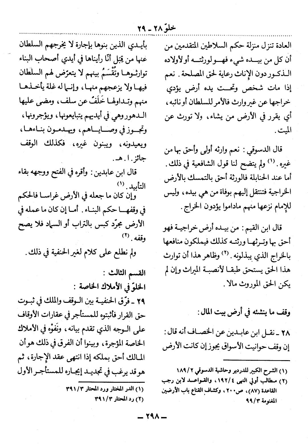 (2) مطالب أولي النهى 4 / 192، والقواعد لابن رجب القاعدة (87) ، ص 200، وكشاف القناع باب الأرضين المغنومة 3 / 99.