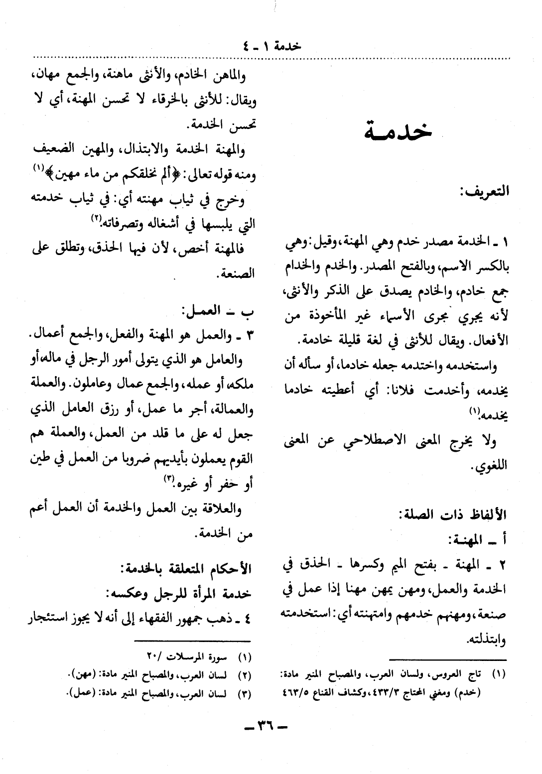 (1) تاج العروس، ولسان العرب، والمصباح المنير مادة: (خدم) ومغني المحتاج 3 / 433، وكشاف القناع 5 / 463.