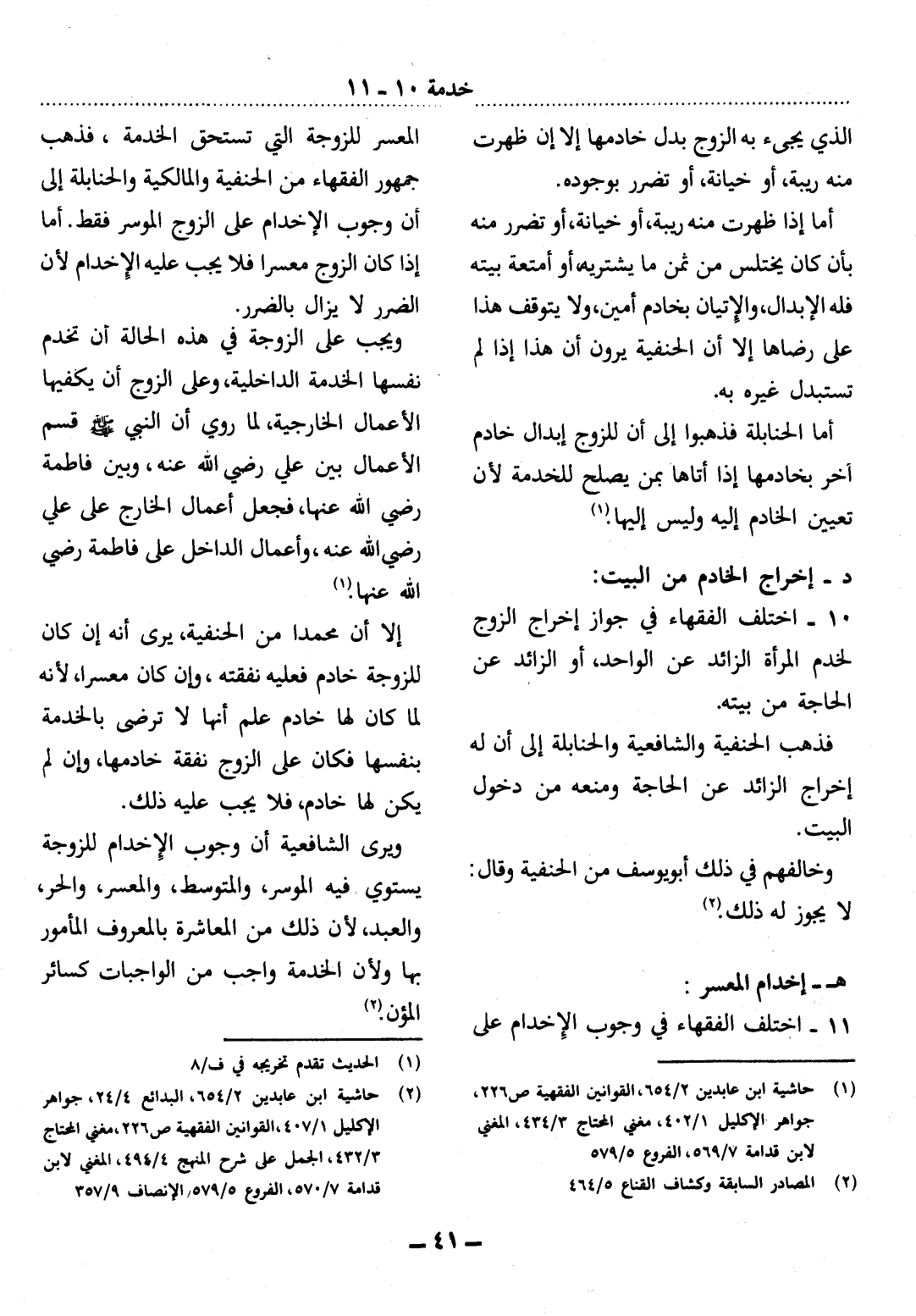10 - اخْتَلَفَ الْفُقَهَاءُ فِي جَوَازِ إِخْرَاجِ الزَّوْجِ لِخَدَمِ الْمَرْأَةِ الزَّائِدِ عَنِ الْوَاحِدِ، أَوِ الزَّائِدِ عَنِ الْحَاجَةِ مِنْ بَيْتِهِ.