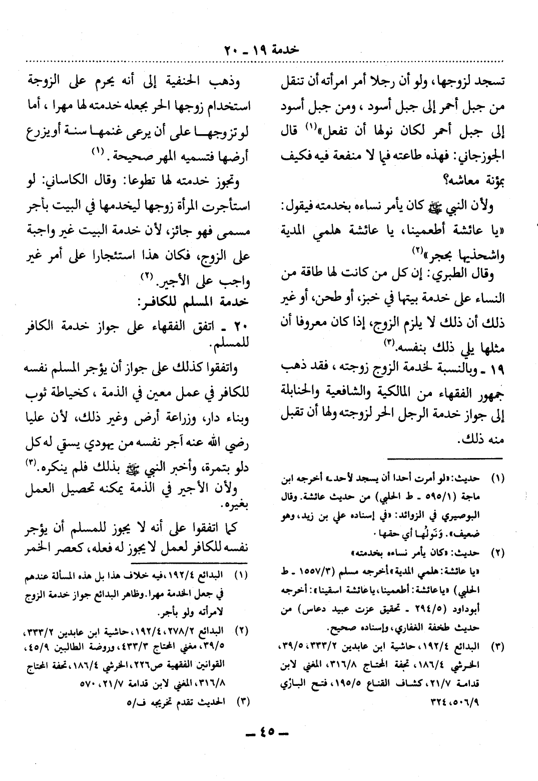 20 - اتَّفَقَ الْفُقَهَاءُ عَلَى جَوَازِ خِدْمَةِ الْكَافِرِ لِلْمُسْلِمِ.