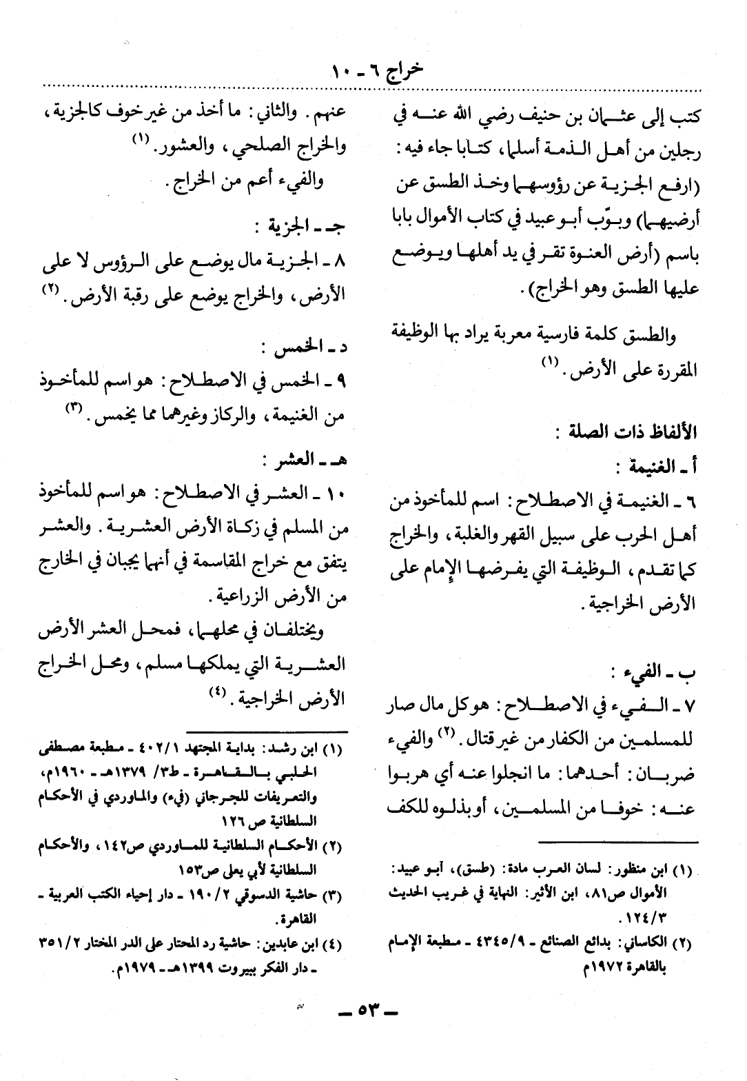 (1) ابن رشد: بداية المجتهد 1 / 402 - مطبعة مصطفى الحلبي بالقاهرة - ط 3 / 1379 هـ - 1960 م، والتعريفات للجرجاني (فيء) والماوردي في الأحكام السلطانية ص 126.