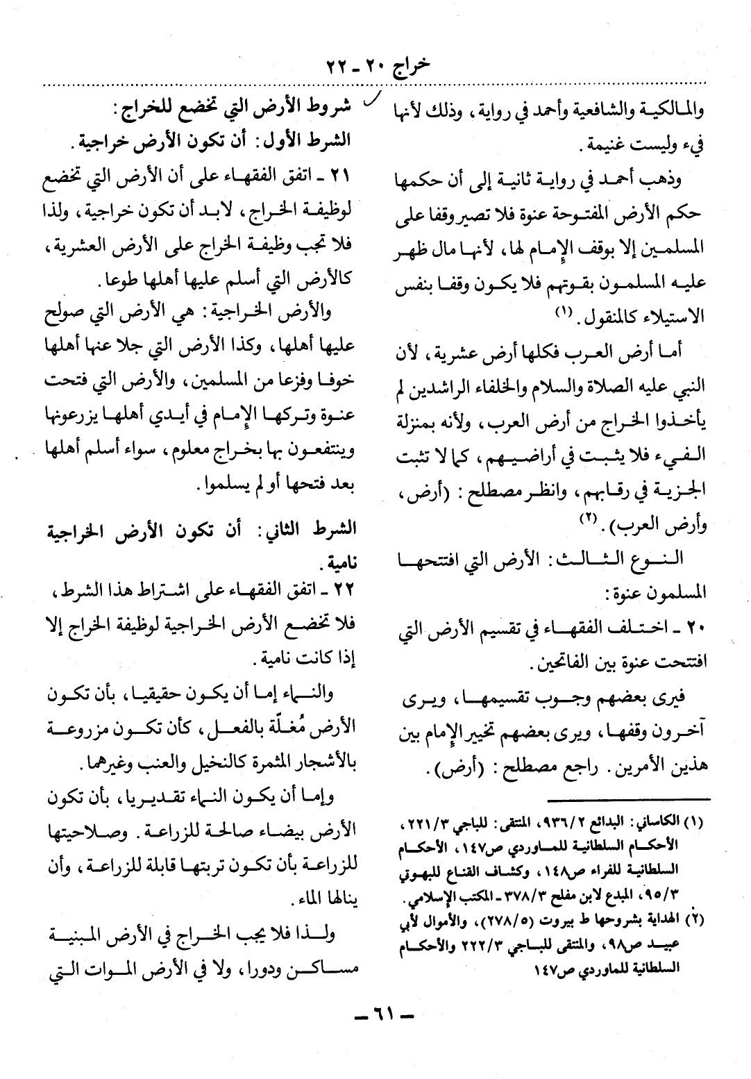 (2) الهداية بشرحها ط بيروت (5 / 278) ، والأموال لأبي عبيد ص 98، والمنتقى للباجي 3 / 222 والأحكام السلطانية للماوردي ص 147.
