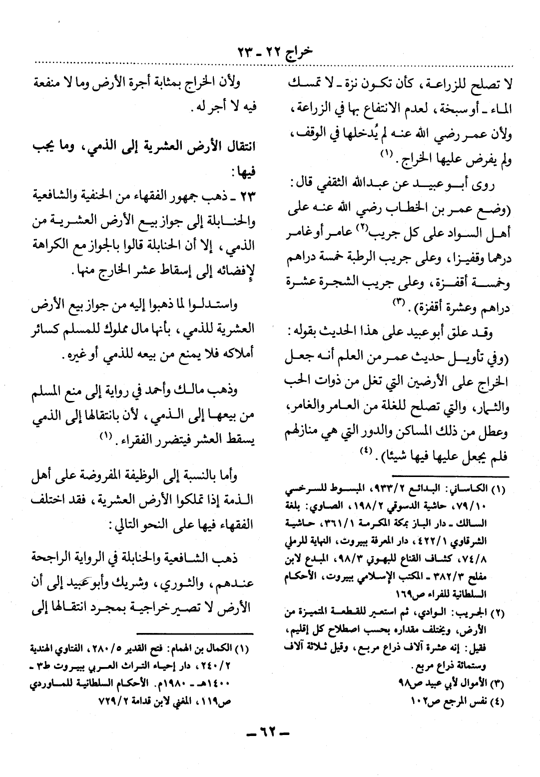 (1) الكاساني: البدائع 2 / 933، المبسوط للسرخسي 10 / 79، حاشية الدسوقي 2 / 198، الصاوي: بلغة السالك - دار الباز بمكة المكرمة 1 / 361، حاشية الشرقاوي 1 / 422، دار المعرفة ببيروت، النهاية للرملي 8 / 74، كشاف القناع للبهوتي 3 / 98، والمبدع لابن مفلح 3 / 382 - المكتب الإسلامي ببيروت، الأحكام السلطانية للفراء ص 169.