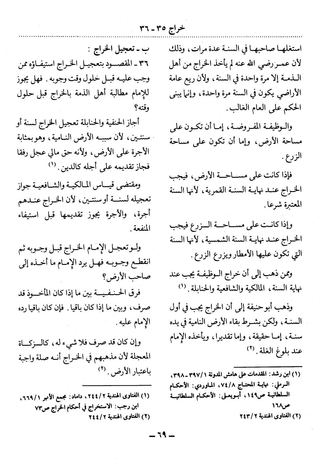 (1) الفتاوى الهندية 2 / 244، داماد: مجمع الأنهر 1 / 669، ابن رجب: الاستخراج في أحكام الخراج ص 73.