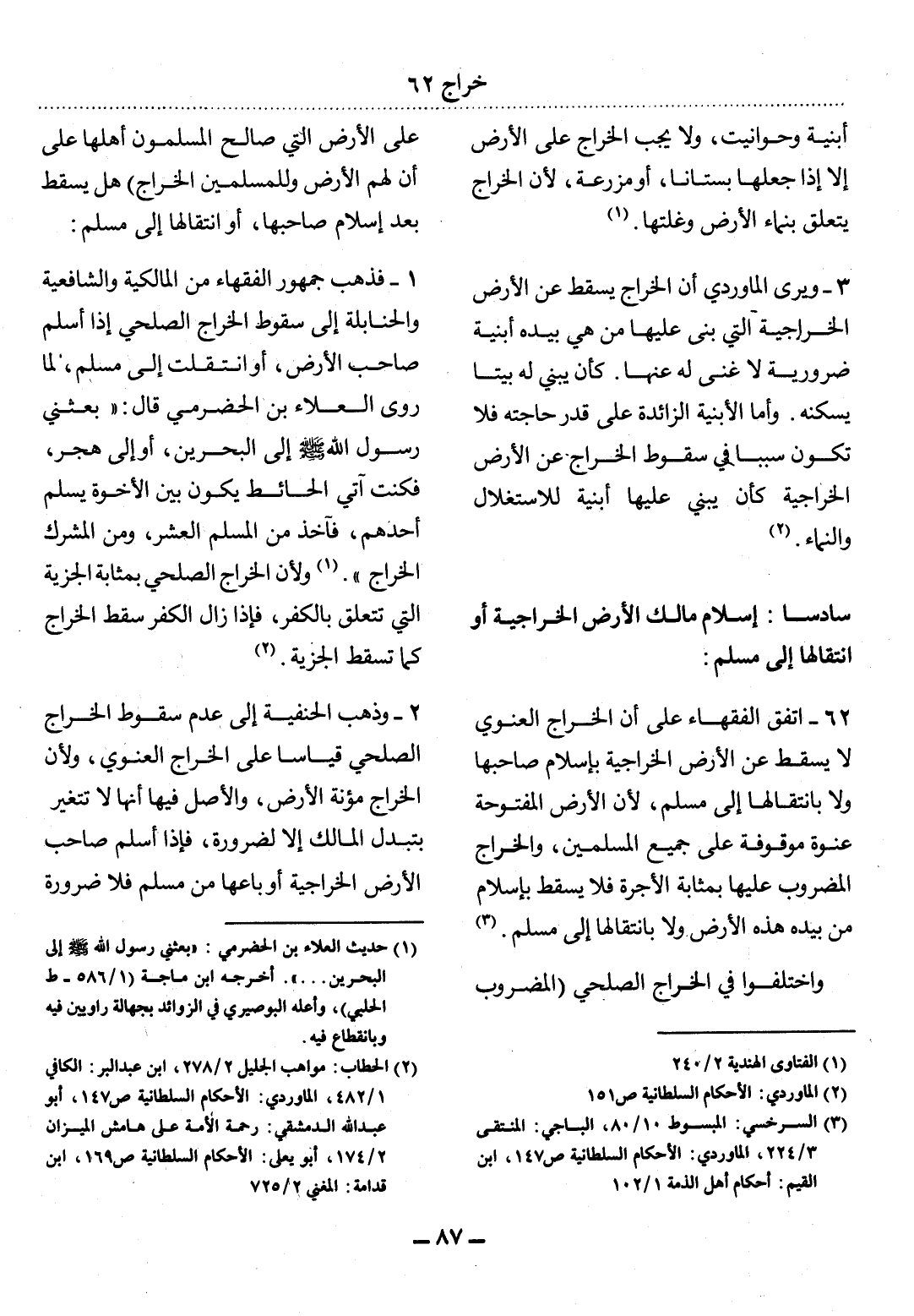 (3) السرخسي: المبسوط 10 / 80، الباجي: المنتقى 3 / 224، الماوردي: الأحكام السلطانية ص 147، ابن القيم: أحكام أهل الذمة 1 / 102.