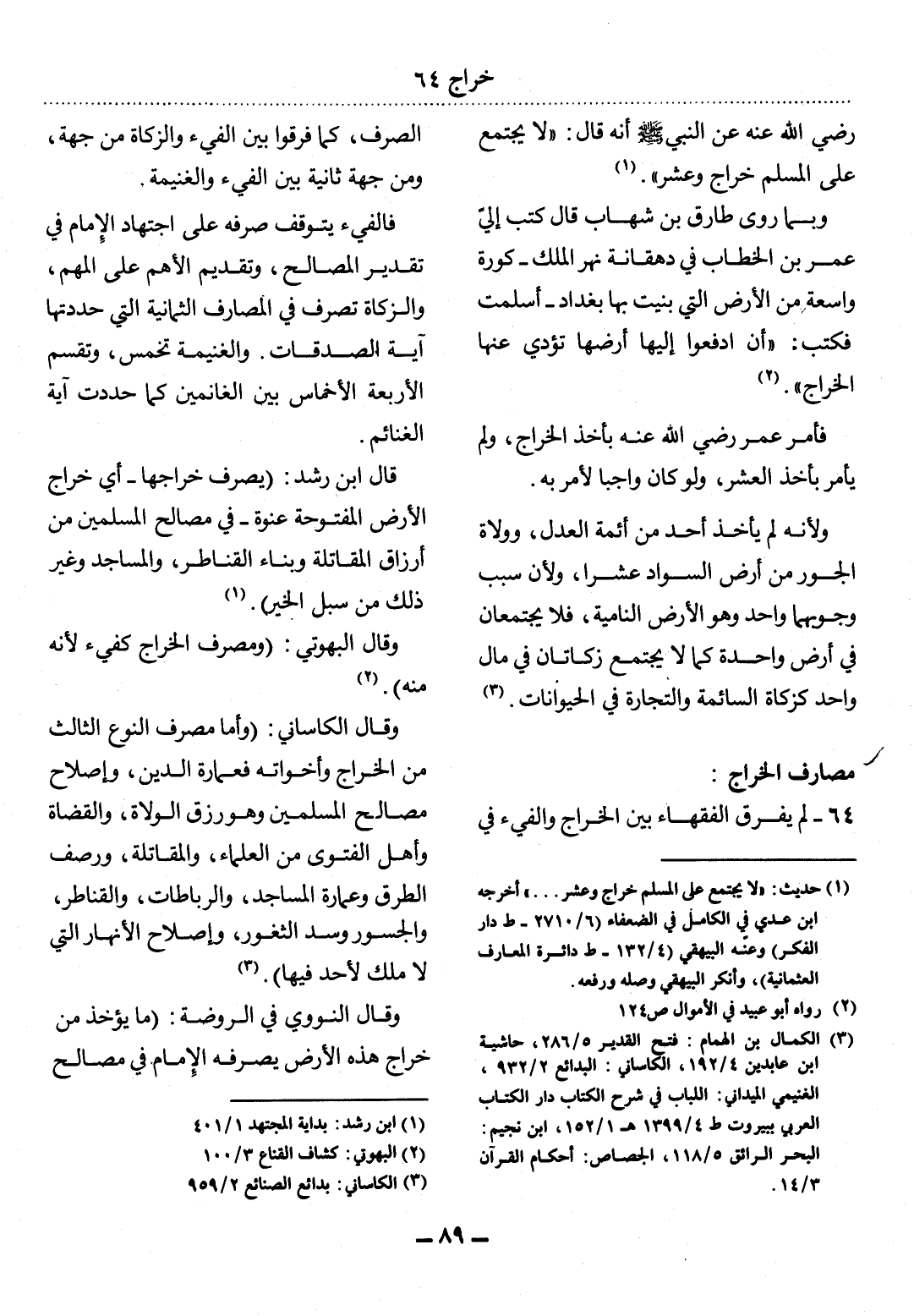 64 - لَمْ يُفَرِّقِ الْفُقَهَاءُ بَيْنَ الْخَرَاجِ وَالْفَيْءِ فِي