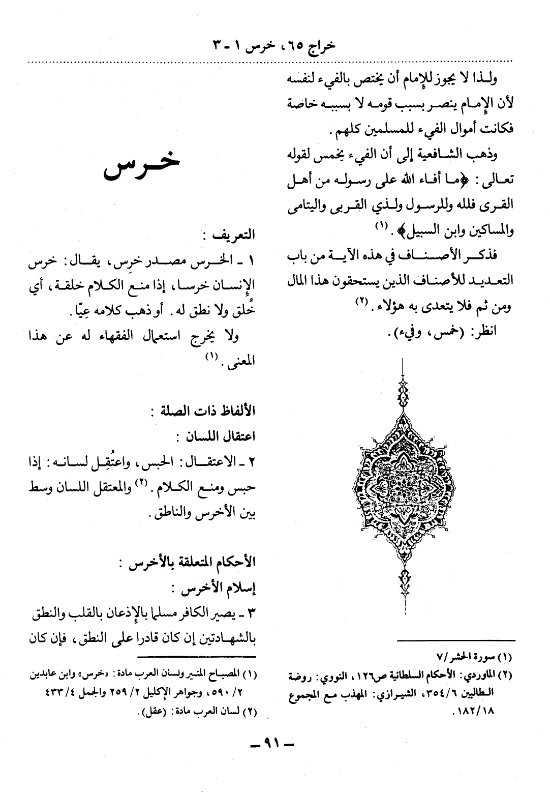 (2) الماوردي: الأحكام السلطانية ص 126، النووي: روضة الطالبين 6 / 354، الشيرازي: المهذب مع المجموع 18 / 182.