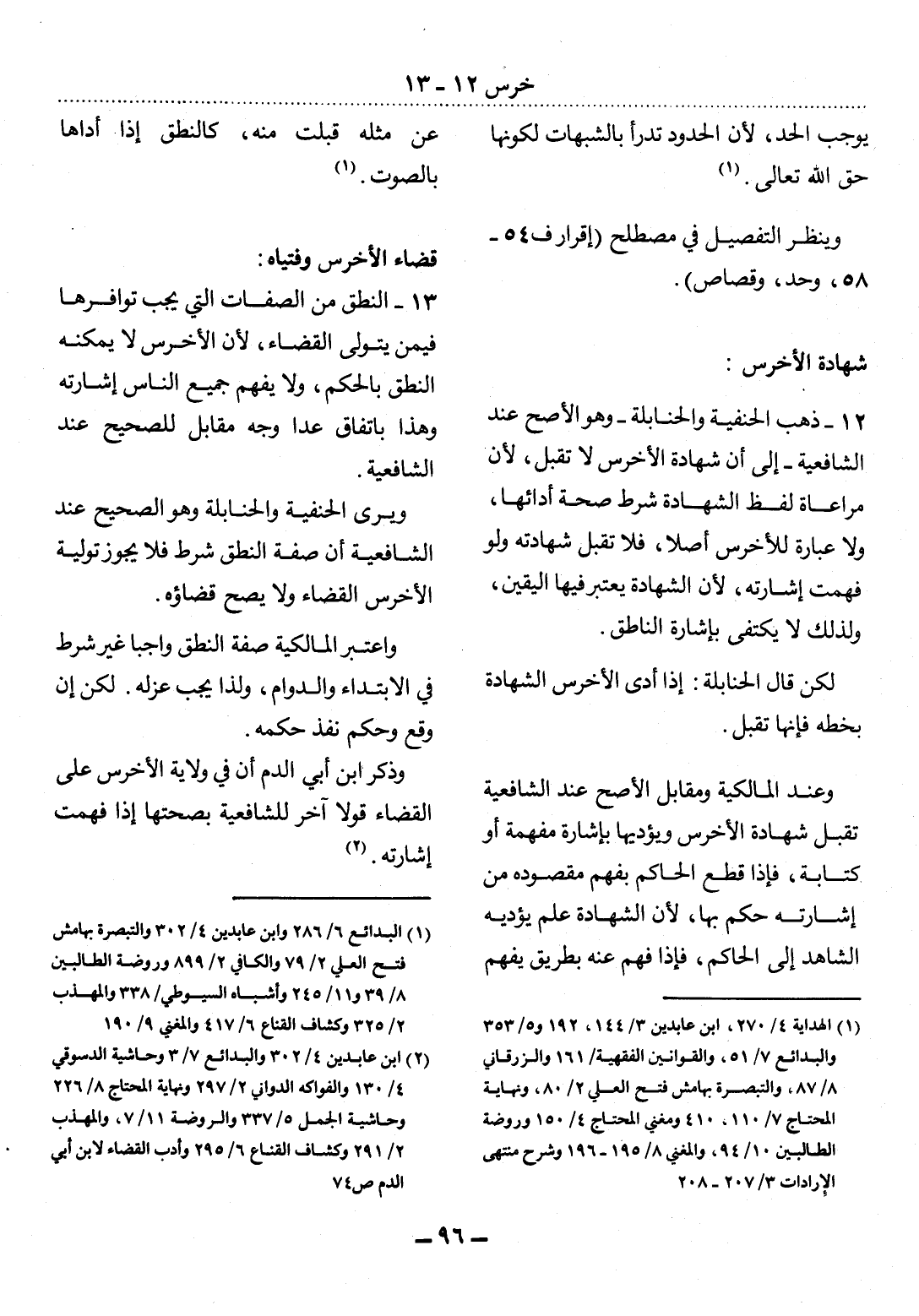 13 - النُّطْقُ مِنَ الصِّفَاتِ الَّتِي يَجِبُ تَوَافُرُهَا فِيمَنْ يَتَوَلَّى الْقَضَاءَ؛ لأَِنَّ الأَْخْرَسَ لاَ يُمْكِنُهُ النُّطْقُ بِالْحُكْمِ، وَلاَ يَفْهَمُ جَمِيعُ النَّاسِ إِشَارَتَهُ وَهَذَا بِاتِّفَاقٍ عَدَا وَجْهٍ مُقَابِلٍ لِلصَّحِيحِ عِنْدَ الشَّافِعِيَّةِ.