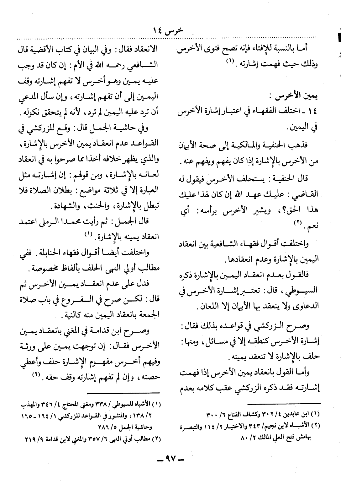 14 - اخْتَلَفَ الْفُقَهَاءُ فِي اعْتِبَارِ إِشَارَةِ الأَْخْرَسِ فِي الْيَمِينِ.