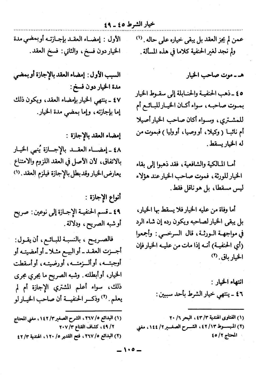 46 - يَنْتَهِي خِيَارُ الشَّرْطِ بِأَحَدِ سَبَبَيْنِ: