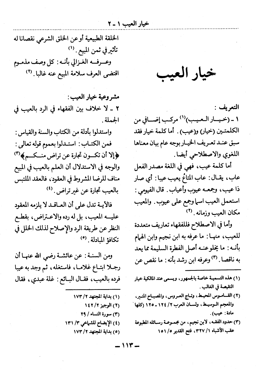 (2) القاموس المحيط، وتاج العروس، والمصباح المنير، والمعجم الوسيط، ولسان العرب، 2 / 124 - 125، كلها مادة: (عيب) .