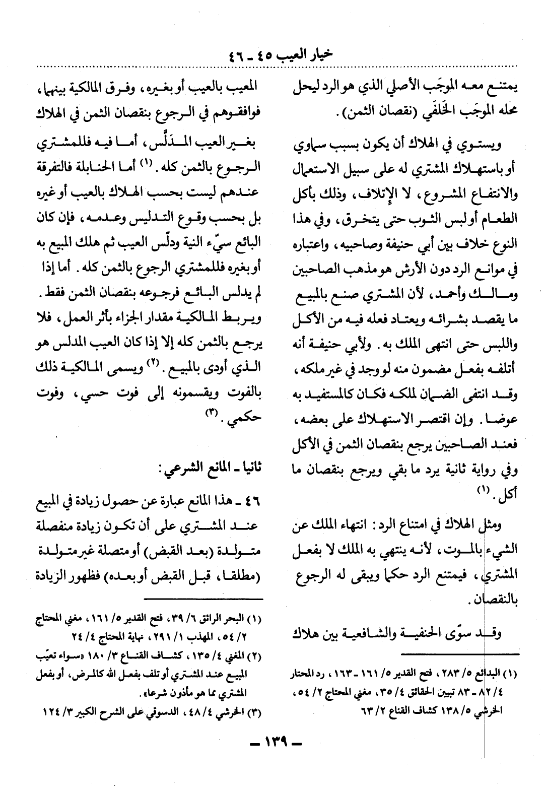46 - هَذَا الْمَانِعُ عِبَارَةٌ عَنْ حُصُول زِيَادَةٍ فِي الْمَبِيعِ عِنْدَ الْمُشْتَرِي عَلَى أَنْ تَكُونَ زِيَادَةً مُنْفَصِلَةً مُتَوَلِّدَةً (بَعْدَ الْقَبْضِ) أَوْ مُتَّصِلَةً غَيْرَ مُتَوَلِّدَةٍ (مُطْلَقًا، قَبْل الْقَبْضِ أَوْ بَعْدَهُ) فَظُهُورُ الزِّيَادَةِ