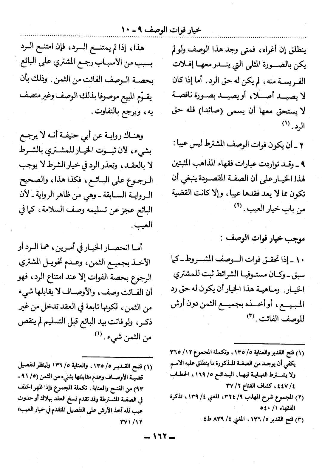 (1) فتح القدير 5 / 135، والعناية 5 / 136، ولينظر لتفصيل قضية الأوصاف وعدم مقابلتها بشيء من الثمن (5 / 91 - 93) من الفتح والعناية. تكملة المجموع " إذا ظهر الخلف في الصفة المشترطة وقد تقدم فسخ العقد بهلاك أو حدوث عيب فله أخذ الأرش على التفصيل المتقدم في خيار العيب " 12 / 371.