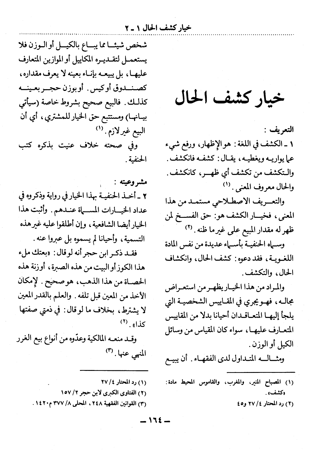 وَالتَّعْرِيفُ الاِصْطِلاَحِيُّ مُسْتَمَدٌّ مِنْ هَذَا الْمَعْنَى، فَخِيَارُ الْكَشْفِ هُوَ: حَقُّ الْفَسْخِ لِمَنْ ظَهَرَ لَهُ مِقْدَارُ الْمَبِيعِ عَلَى غَيْرِ مَا ظَنَّهُ (2) .
