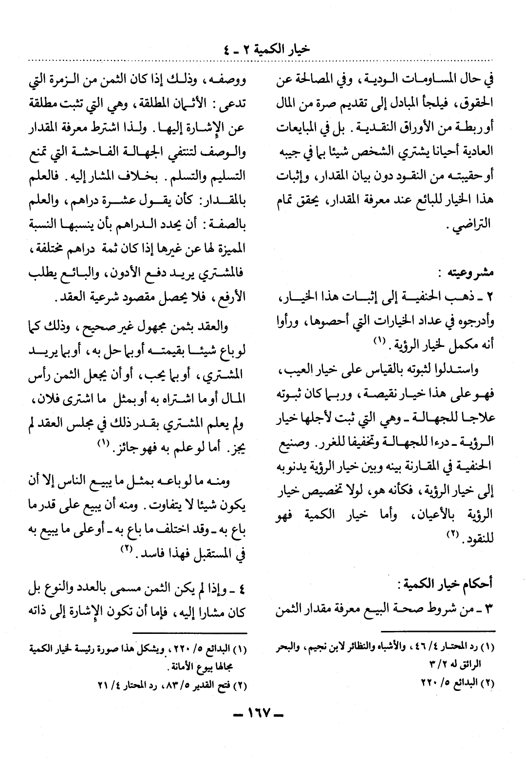 (1) البدائع 5 / 220، ويشكل هذا صورة رئيسة لخيار الكمية مجالها بيوع الأمانة.