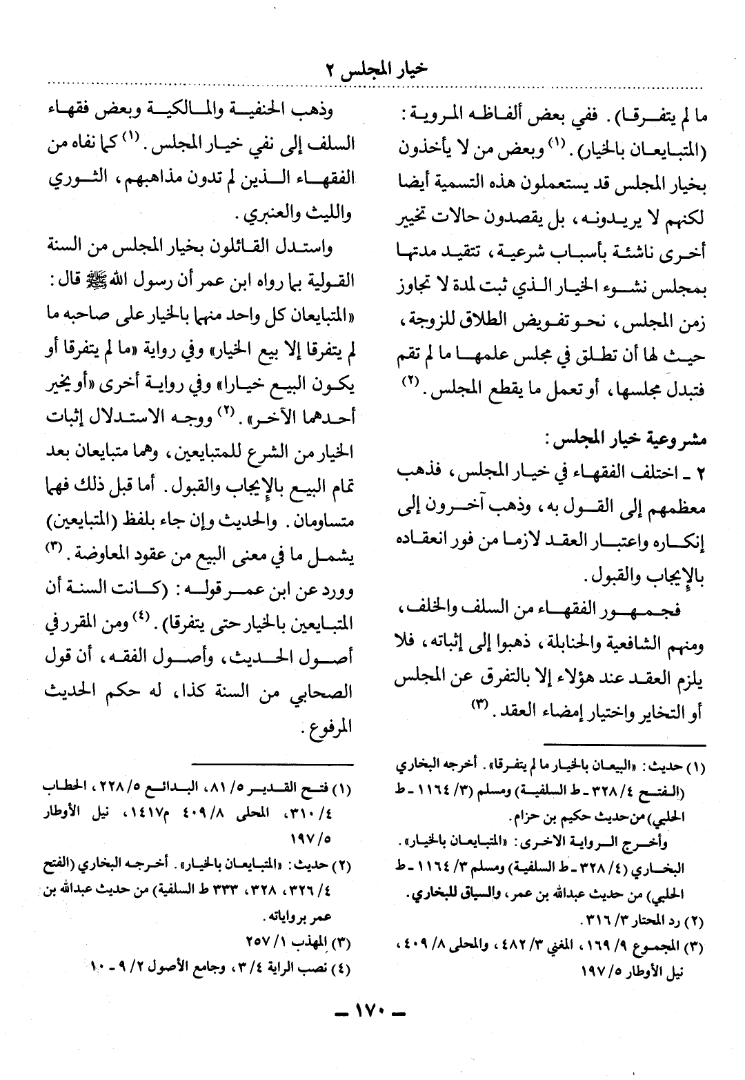 (2) حديث " المتبايعان بالخيار " أخرجه البخاري (الفتح 4 / 326، 328، 333 ط السلفية) من حديث عبد الله بن عمر برواياته.