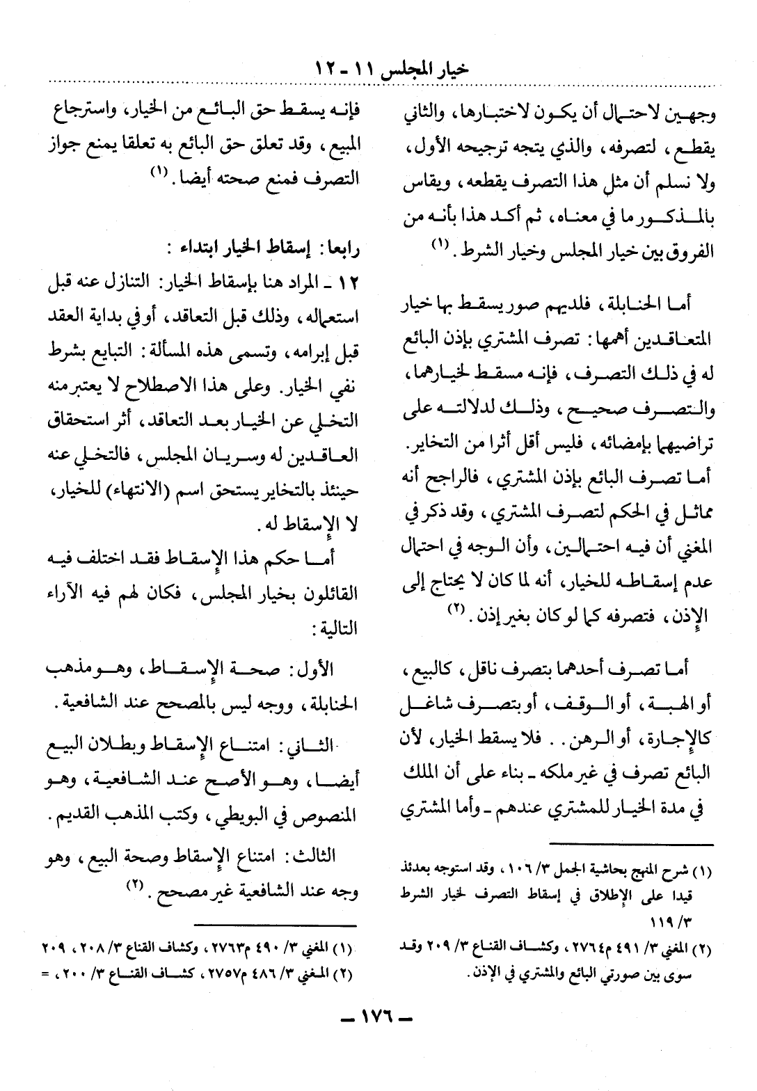 (1) المغني 3 / 490 م 2763، وكشاف القناع 3 / 208، 209.