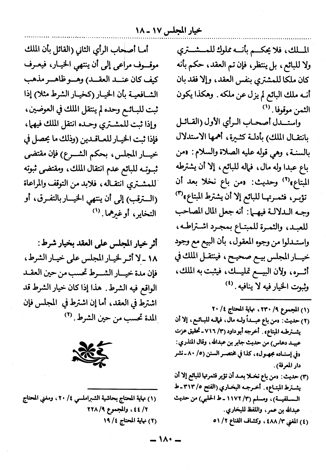 (1) نهاية المحتاج بحاشية الشبراملسي 4 / 20، ومغني المحتاج 2 / 44، والمجموع 9 / 228.