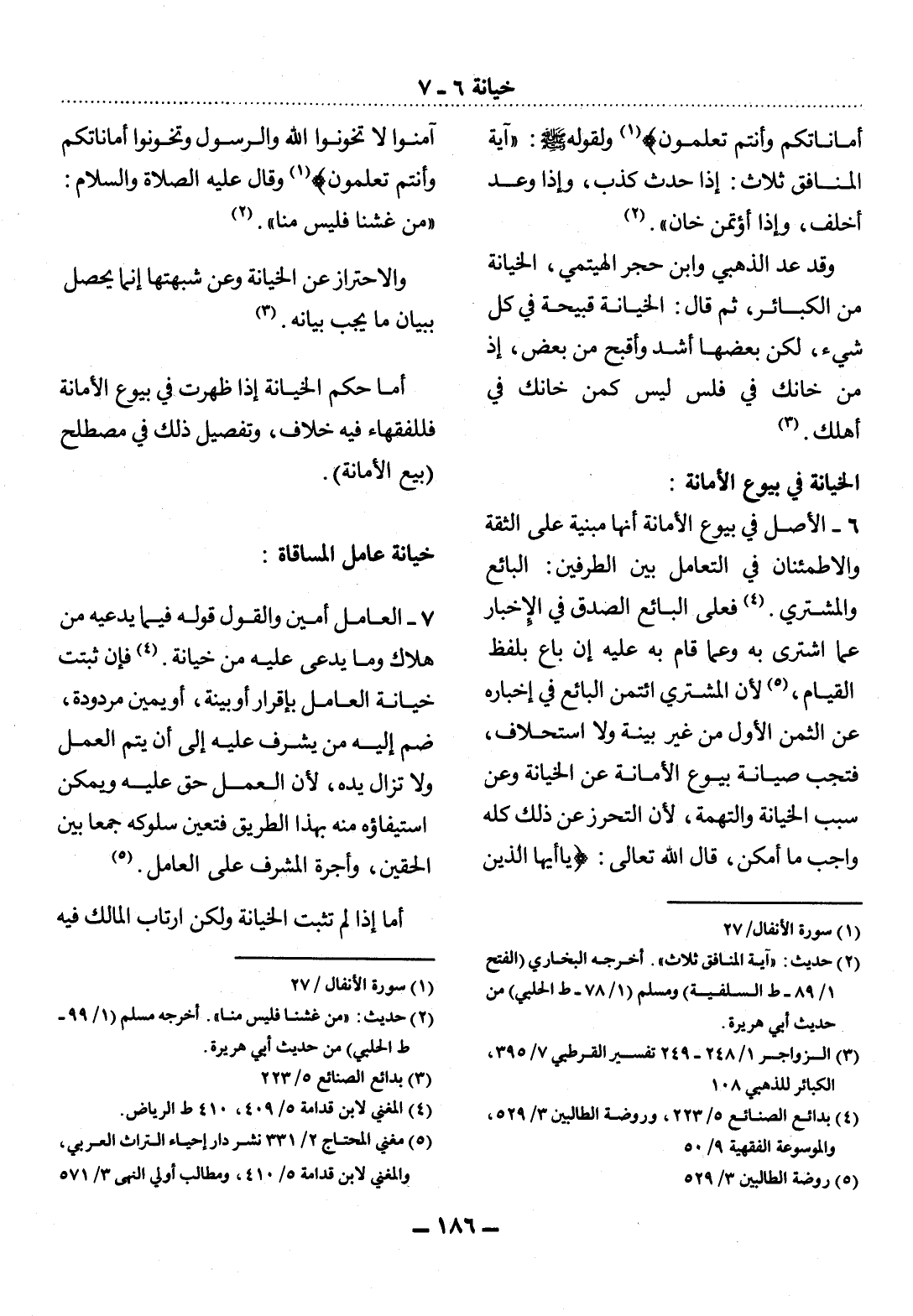 آمَنُوا لاَ تَخُونُوا اللَّهَ وَالرَّسُول وَتَخُونُوا أَمَانَاتِكُمْ وَأَنْتُمْ تَعْلَمُونَ} (1) وَقَال عَلَيْهِ الصَّلَاةُ وَالسَّلَامُ: مَنْ غَشَّنَا فَلَيْسَ مِنَّا (2) .