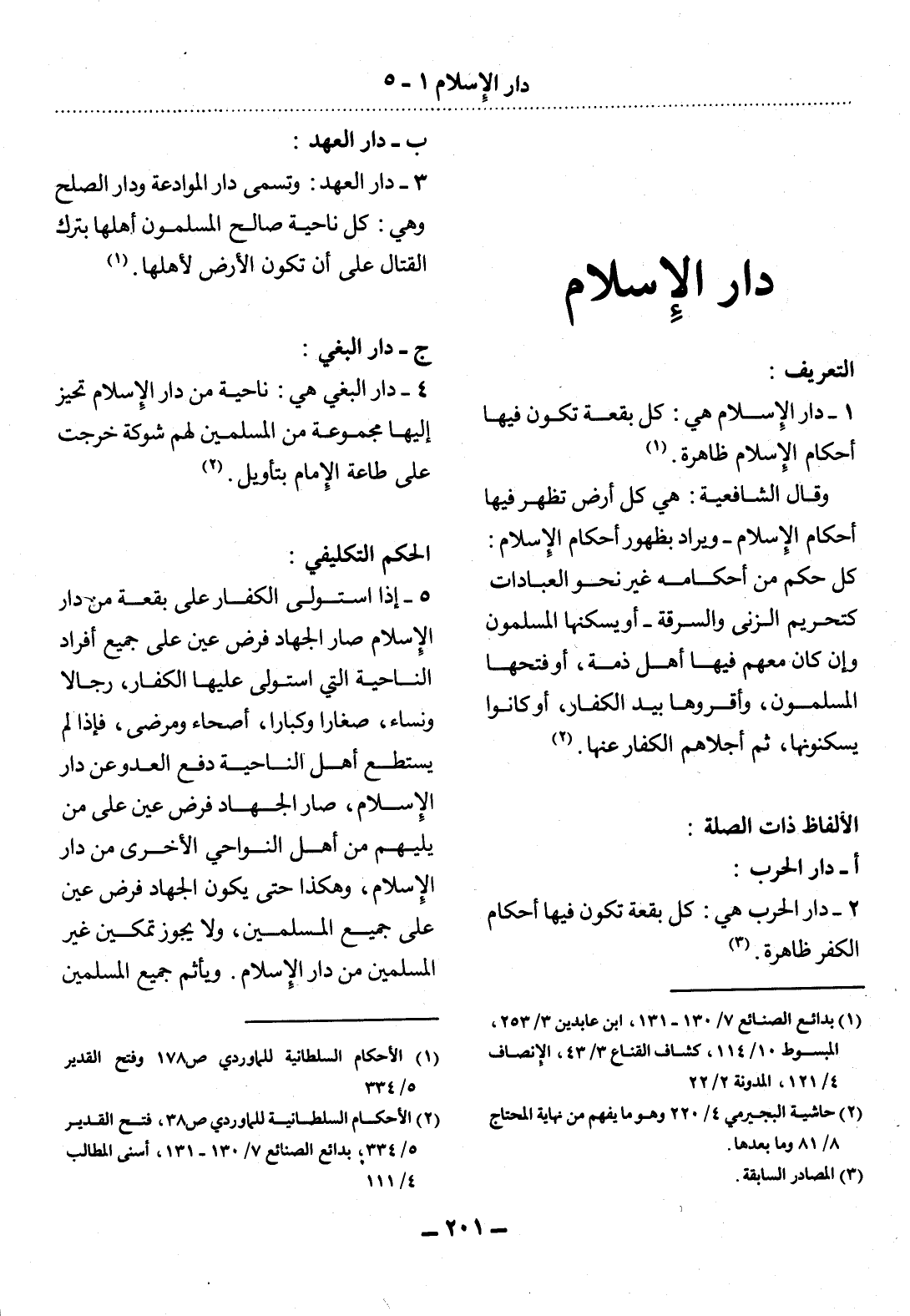 1 - دَارُ الإِْسْلاَمِ هِيَ: كُل بُقْعَةٍ تَكُونُ فِيهَا أَحْكَامُ الإِْسْلاَمِ ظَاهِرَةً (1) .