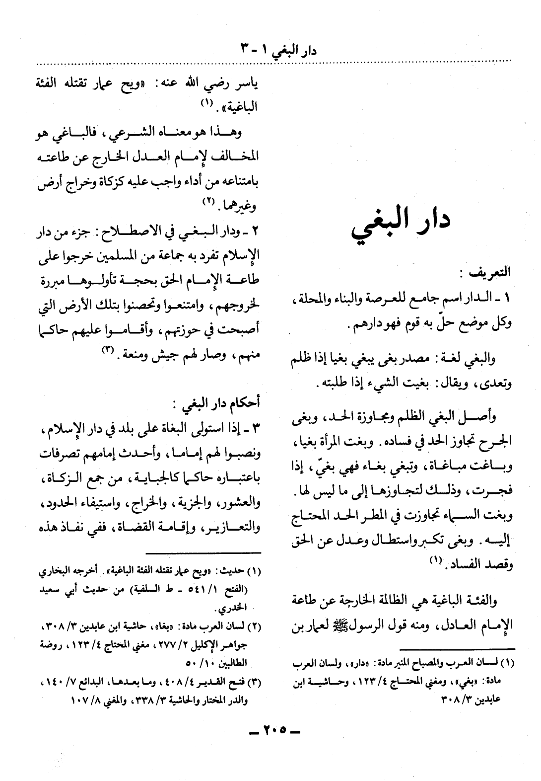 (1) لسان العرب، والمصباح المنير مادة " دار "، ولسان العرب مادة " بغي "، ومغني المحتاج 4 / 123، وحاشية ابن عابدين 3 / 308.