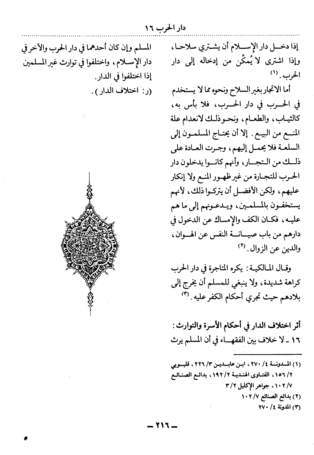 (1) المدونة 4 / 270، ابن عابدين 3 / 226، قليوبي 2 / 156، الفتاوى الهندية 2 / 192، بدائع الصنائع 7 / 102، جواهر الإكليل 2 / 3.