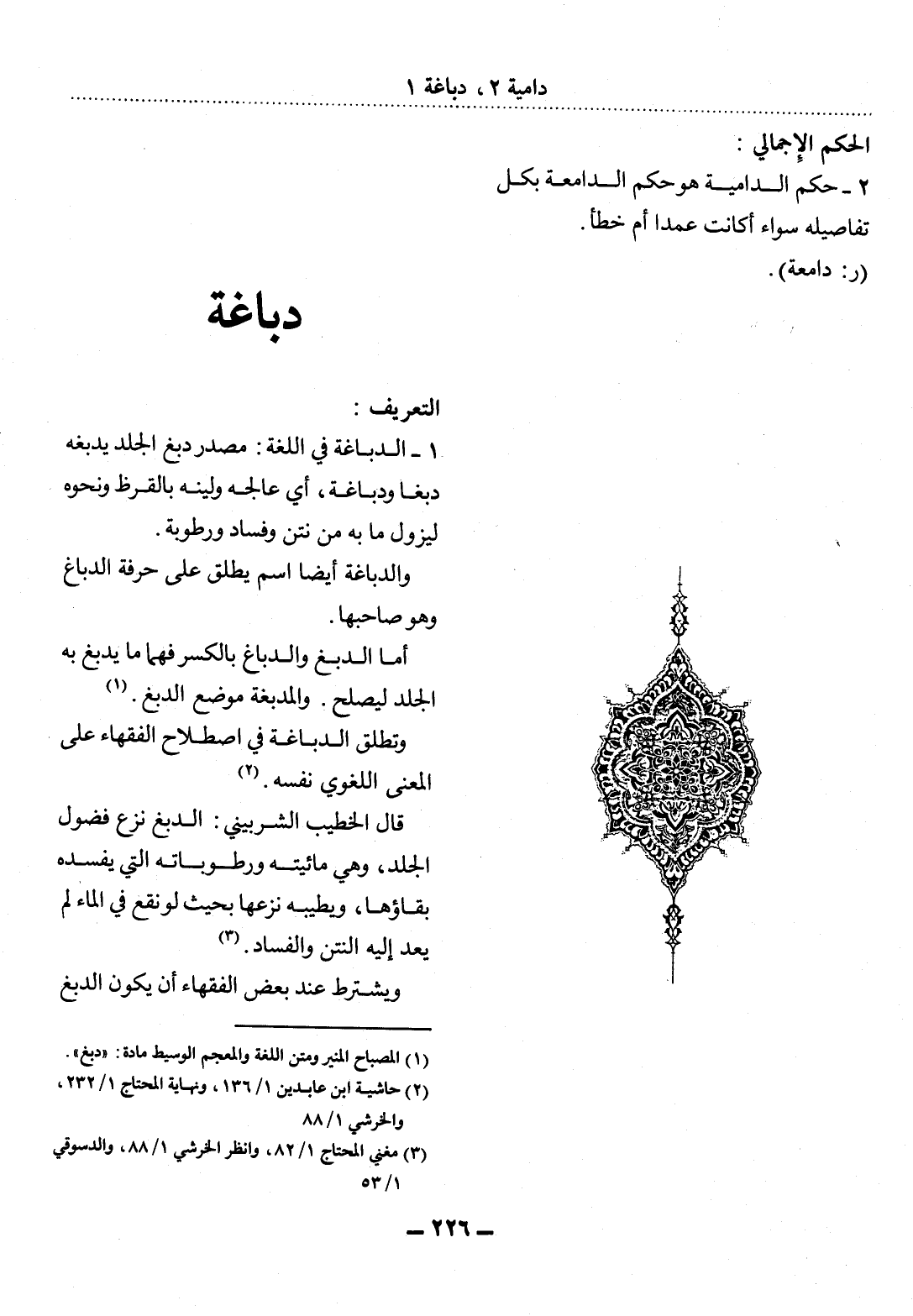 (1) المصباح المنير، ومتن اللغة، والمعجم الوسيط مادة: " دبغ ".