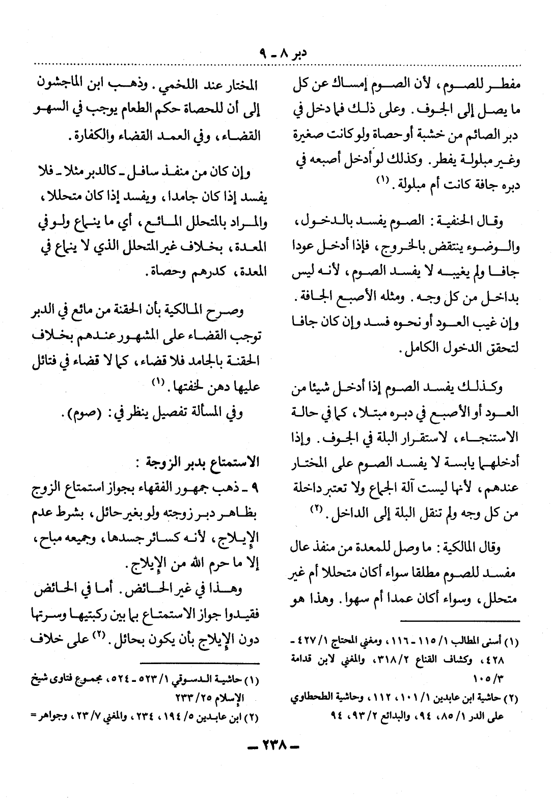 (2) ابن عابدين 5 / 194، 234، والمغني 7 / 23، وجواهر الإكليل 1 / 275، وأسنى المطالب 3 / 113، وكشاف القناع 5 / 189.