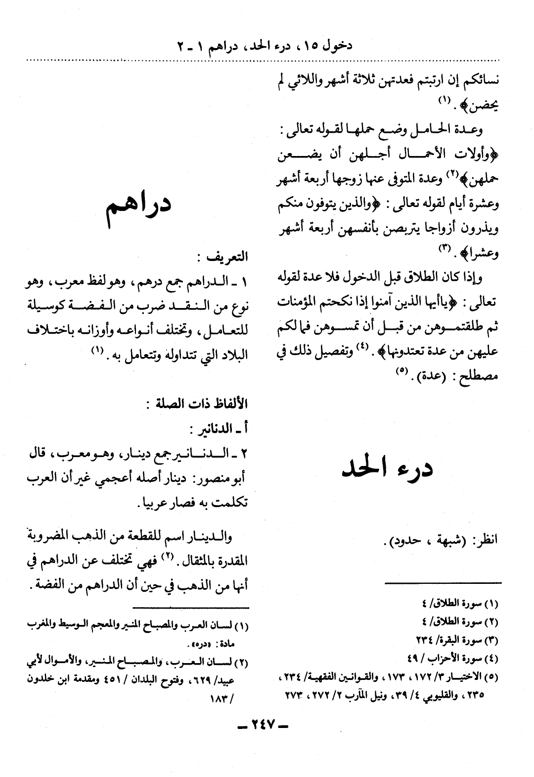1 - الدَّرَاهِمُ جَمْعُ دِرْهَمٍ، وَهُوَ لَفْظٌ مُعَرَّبٌ، وَهُوَ نَوْعٌ مِنَ النَّقْدِ ضُرِبَ مِنَ الْفِضَّةِ كَوَسِيلَةٍ لِلتَّعَامُل، وَتَخْتَلِفُ أَنْوَاعُهُ وَأَوْزَانُهُ بِاخْتِلاَفِ الْبِلاَدِ الَّتِي تَتَدَاوَلُهُ وَتَتَعَامَل بِهِ (1) .